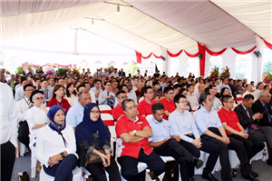 馬來西亞柔佛州國際貿(mào)易、投資及公用事業(yè)委員會主席潘偉斯、中國紡織工業(yè)聯(lián)合會會長孫瑞哲、中國恒天集團有限公司總裁劉海濤、中國棉紡織行業(yè)協(xié)會會長朱北娜、中國駐馬來西亞大使館經(jīng)濟商務(wù)參贊處一等秘書李雅彬、岱銀集團董事長趙煥臣、岱銀集團副董事長李昌剛、岱銀集團副總經(jīng)理楊京平出席開業(yè)慶典。中國銀行、中國工商銀行、中國建設(shè)銀行、當?shù)氐拇笕A銀行、大眾銀行、渣打銀行等金融機構(gòu),以及南通衣依、河南平棉、黑牡丹、撫州新維美、浙江立馬云山等單位的260余名嘉賓參加了開業(yè)慶典。