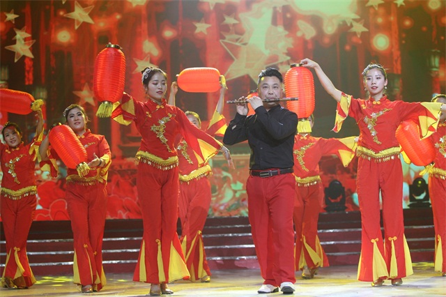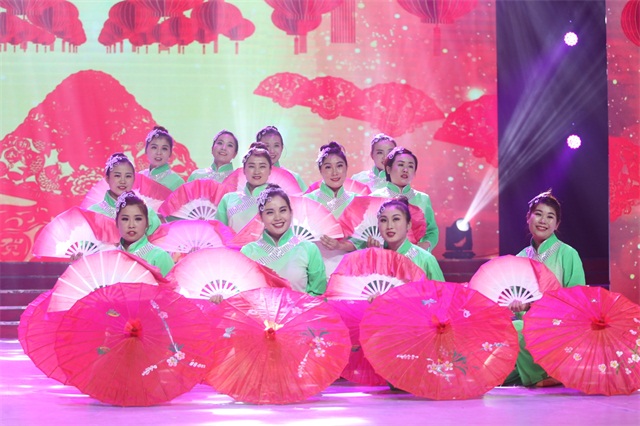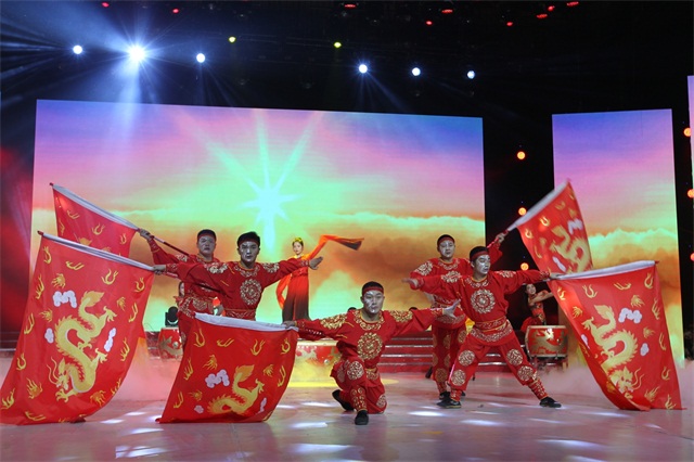 ▲喜慶熱鬧的功夫旗舞《旗開得勝》拉開了聯(lián)歡會(huì)的序幕