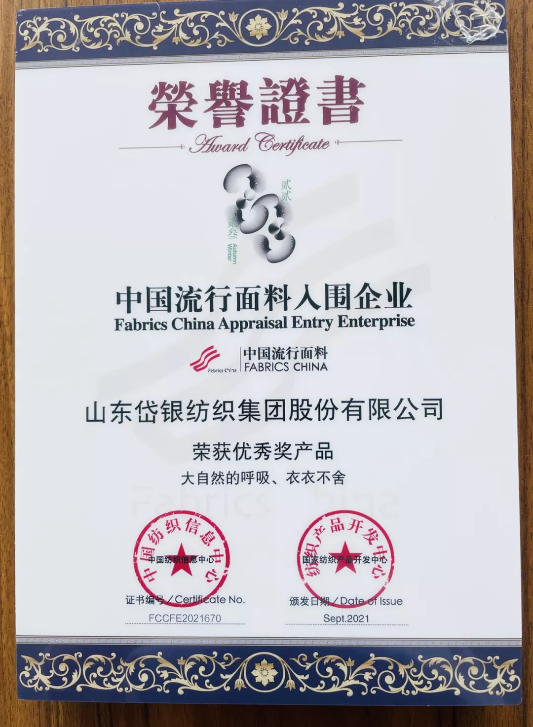 近日, 在由中國紡織工業(yè)聯(lián)合會主辦的2021中國國際面料設(shè)計大賽、第46屆(2022/2023秋冬)中國流行面料入圍評審活動中,岱銀集團紡織研究院參評的面料“大自然的呼吸”和“衣衣不舍”榮獲中國流行面料優(yōu)秀獎。中國國際面料設(shè)計大賽是中國紡織行業(yè)最具權(quán)威的紡織設(shè)計專業(yè)賽事,宗旨是鼓勵和推進以市場為導(dǎo)向的紡織產(chǎn)品創(chuàng)新,提升創(chuàng)新產(chǎn)品的市場競爭力。此次入選的兩款面料產(chǎn)品主打漢麻元素,注重面料舒適性和功能性的有機結(jié)合,面料在穿著過程中舒適透氣,同時采用長絲短纖復(fù)合紡紗技術(shù)與抗菌長絲復(fù)合,達到持久抗菌的效果。