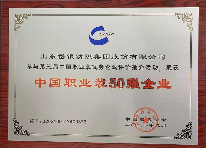 岱銀集團(tuán)榮獲“中國(guó)職業(yè)裝50強(qiáng)企業(yè)”榮譽(yù)稱(chēng)號(hào)
