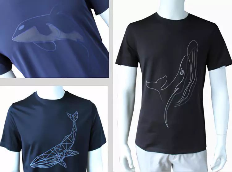 T恤前胸使用印花、繡花、鏤空、釘珠等工藝體現(xiàn)主題元素;使用主題元素設(shè)計(jì)圖案,制作印花布,用作大身里布、褲子兜布等。