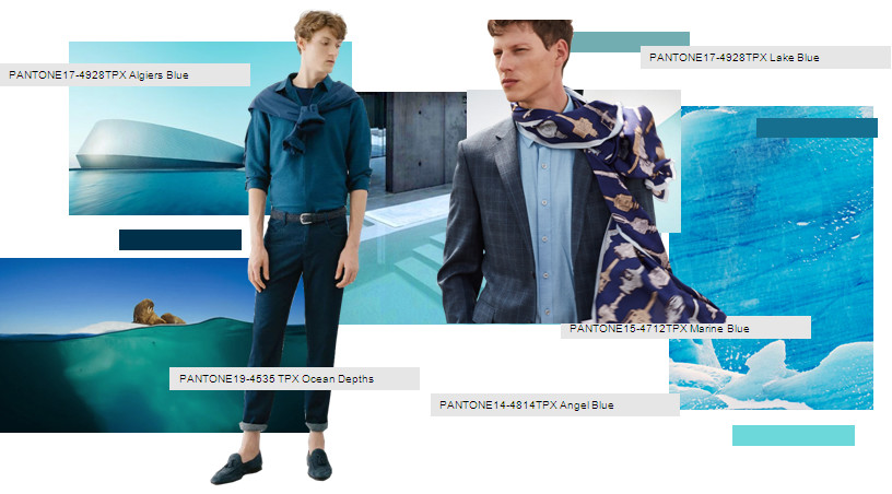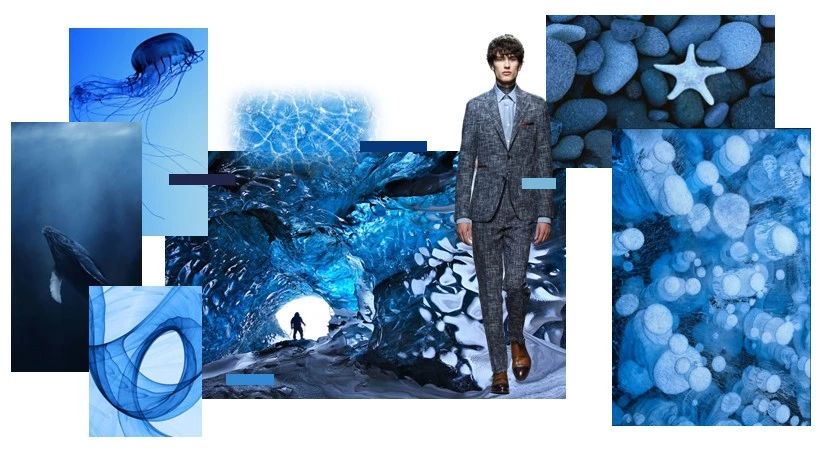 海洋中波浪的顏色和冰川的顏色,這兩個(gè)色是往季流行的孔雀藍(lán)、孔雀綠的延伸,同時(shí)也呼應(yīng)了薄荷藍(lán)、薄荷綠。
