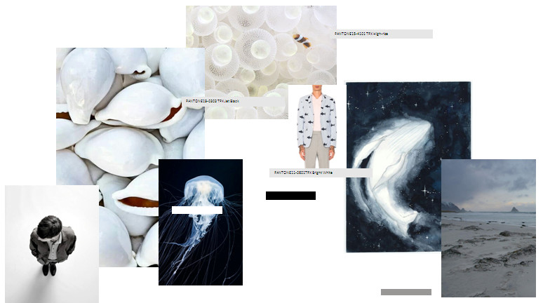 系列元素體現(xiàn):提取海洋元素,貫穿設(shè)計(jì)主題,搭配元素以印花、提花、繡花形式來(lái)展現(xiàn),亮藍(lán)色作為系列貫穿色。