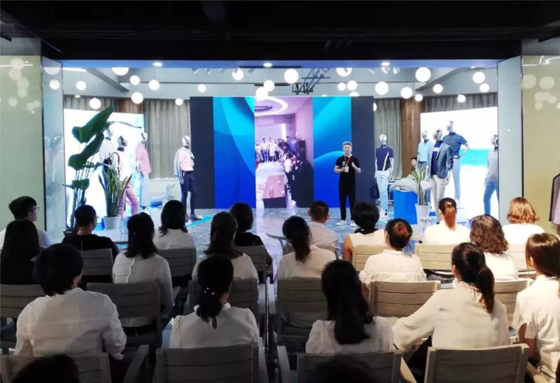 8月15-16日,雷諾男裝舉行2019春夏新品發(fā)布會(huì)暨新品訂貨會(huì)。本季雷諾2019春夏新品以“藍(lán)色星球”為主題,以“虎鯨”和“水母”為主題元素,推出“摩登商務(wù)”和“摩登時(shí)尚”兩個(gè)系列。其中,摩登商務(wù)系列推出深海藍(lán)、碧波藍(lán)冰川綠、瑰麗時(shí)尚粉三個(gè)色系,摩登時(shí)尚系列以中性海灘色色系為主,并設(shè)有珊瑚紅、醒目黃兩個(gè)陳列色。
