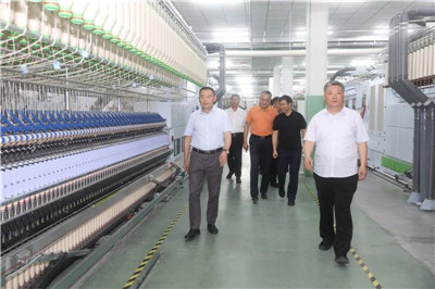 參加投產慶典的領導和嘉賓在儀式結束后,參觀了岱銀新宇紡織公司三萬錠智能紡紗生產線。